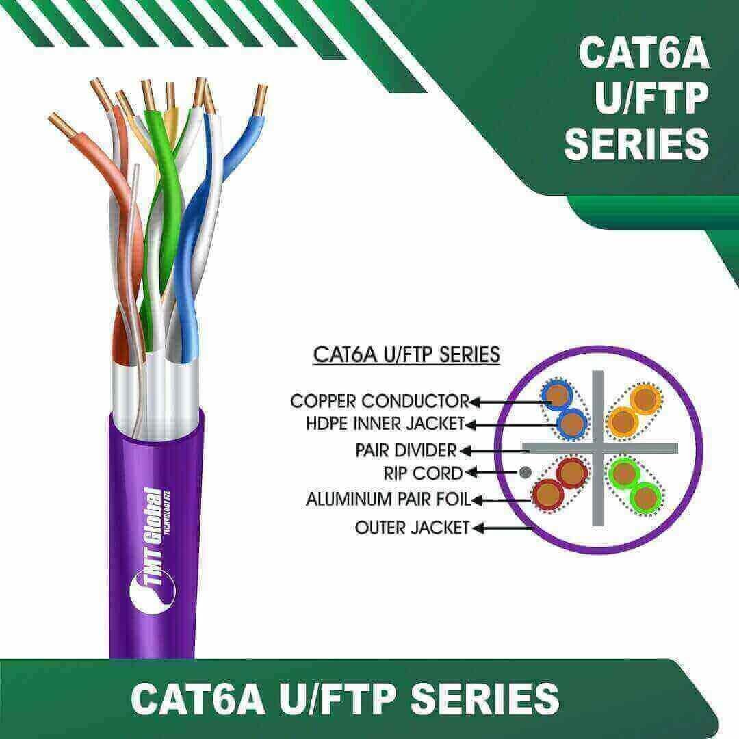TMT Global Cat6 a 23 awg 4 twisted pair U/FTP Cable 305m are Manufactured Tested and Complied with IEC 60332-1-2 EN 50173-1:2011 ISO/IEC11801:2011(Ed. 2.2) ANSI/TIA/EIA-568.2-D IEC61935-2:2010(Ed.3.0) EN 50173-2:2007 including Amendment A1:2010 Requirements for Patch Cord Assemblies and Provide High Performance levels for structured cabling systems.Cat6a 23awg 4 twisted pair U-FTP Cable 305m